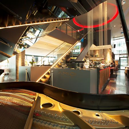 Das Amici ist DAS neue In-Lokal in Stuttgart, bestehend aus einem Restaurant mit Sterneküche im EG und einem Nobel-Club im 1. OG. Nicht nur die extravagante Architektur, sondern auch die Innenausstattung des Gebäudes lassen durch hochwertige Materialien, Designerausstattung und neustes Equipment auf eine große Investition schließen. Das Team von sld mediatec hat sich beim Umbau dieses Location wieder selbst übertroffen. Das Highlight im Amici Stuttgart sind die 27 Displays welche im Club des 1. OG´s über zwei Wandseiten und insgesamt über eine Länge von 35m verbaut wurden.